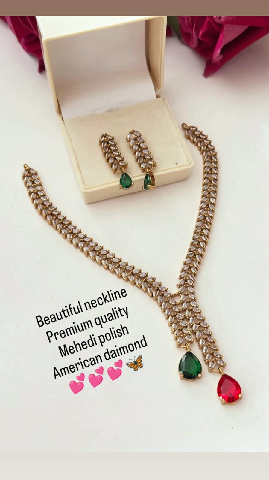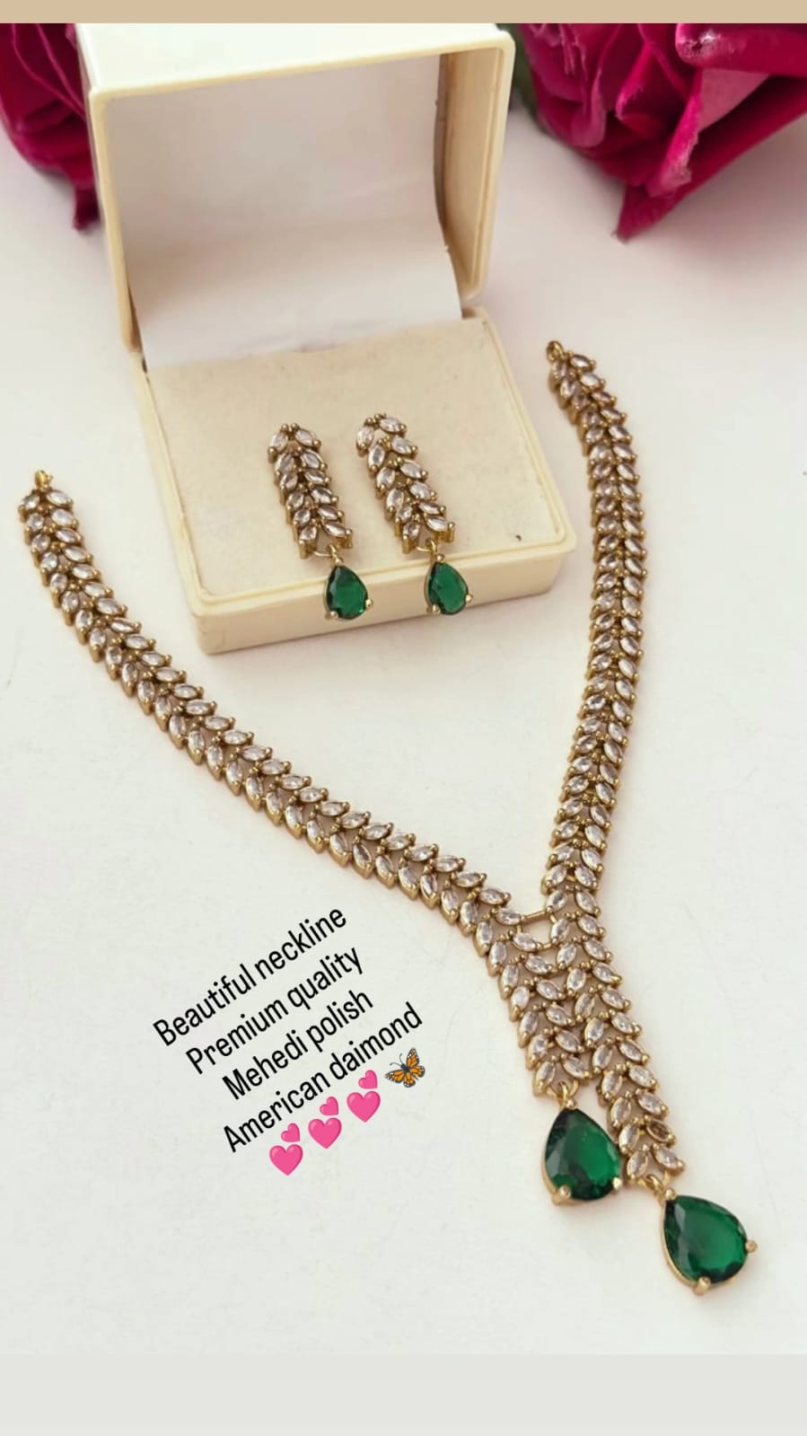 Adorned with sparkling American diamonds for a rich, graceful shine.