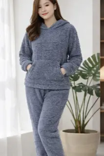 Premium heavy-quality woolen nightsuit with hoodie and front pocket. Perfect for winter comfort.